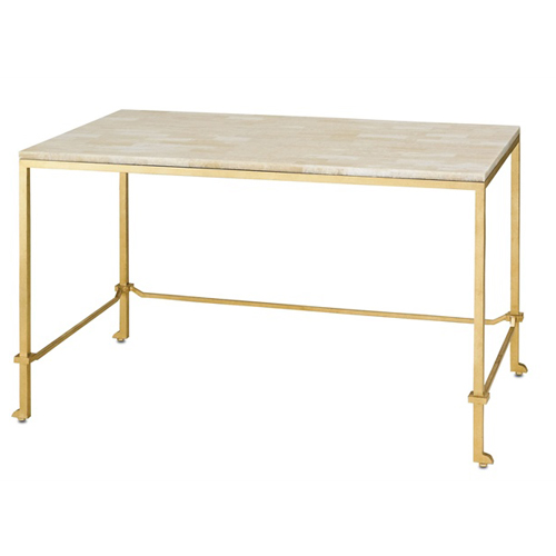 The Dalia Collection pays homage to decorator Billy Baldwin. With a gold leaf frame, the Dalia is an elegant place to display precious collections and books. Inspired by Mr. Baldwin, the Dalia Desk is always classic. This gold leaf table is beautifully accompanied with a crystal stone top. The solid bar frame is accentuated with a square detail in the foot.
